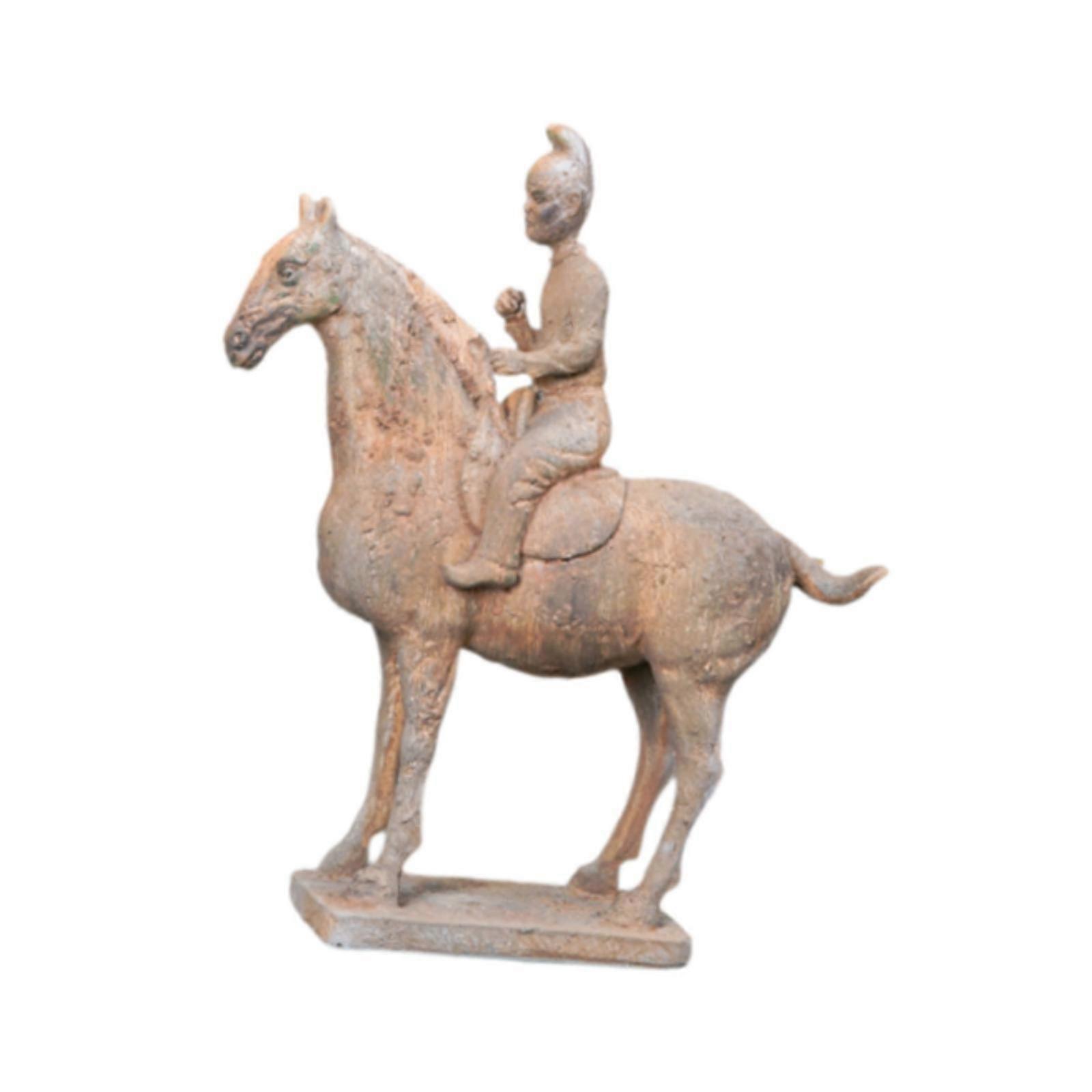 Pottery Horse Riding Figure Ornament Simulated Unearthed Pottery Bookcase