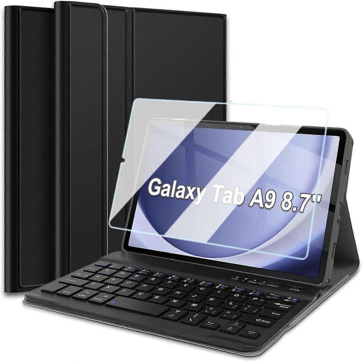 Keyboard Case with Screen Protector for compatible with Samsung Galaxy Tab A9 8.7 Inch 2023 Tablet (SM-X110/X115/X117), Slim PU Stand