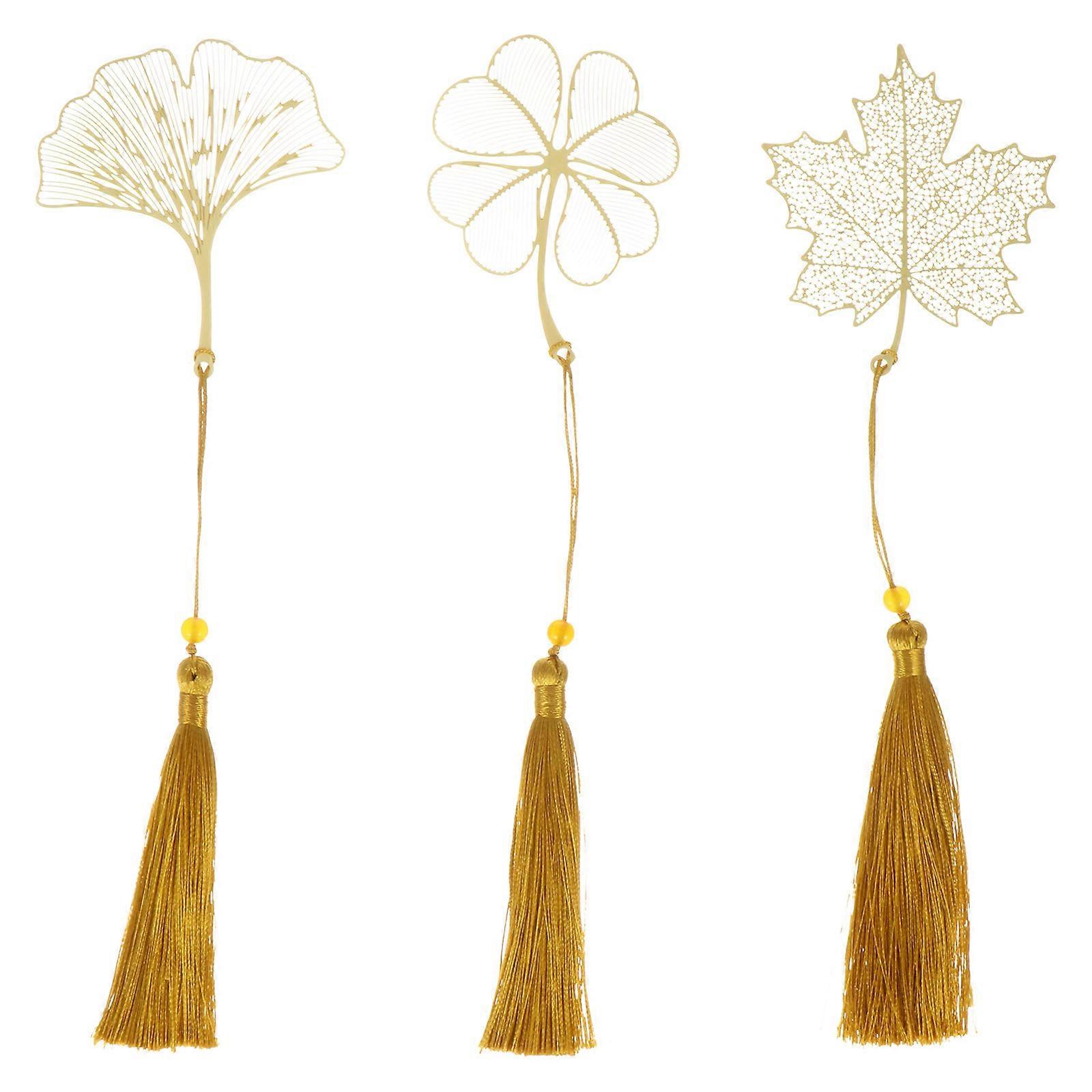 Creative Metal Leaf Shaped Bookmark with Tassel for Reading 6Pcs Pack
