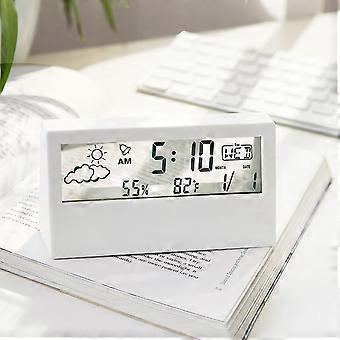 LCD Digital Alarm Clock, Clear Display, Simple Design, Digital Thermometer and Hygrometer, for Home, Bedroom, School, Office, Transparent White