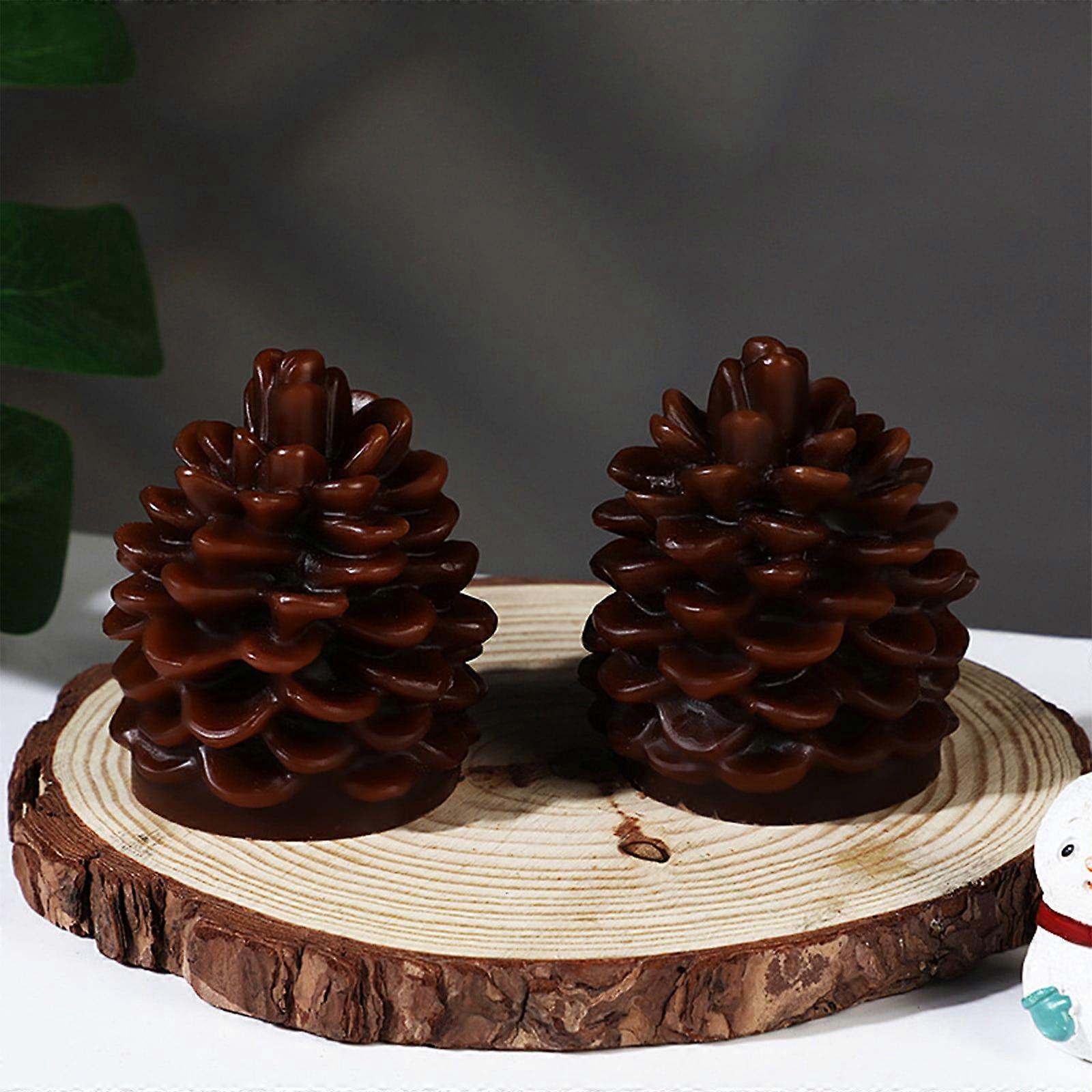 LED Flickering Pinecone Candle, Battery Operated Flameless with Timer, Compatible with Christmas Tree Decor, Real Wax Light, 3.94in Home Gift