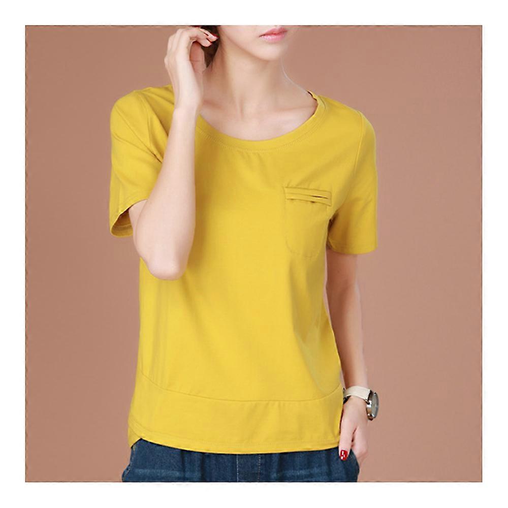 Classical round collar shows charming neck line;accordion pleat pocket is beautiful and decent. Features: Accordion pleat pocket Comfortable wear and skin-friendly Simple and decent style,every detail is delicate Breathable fabric Well-chosen high-end material, close to skin and soft Specifications: pattern:solid color design:pullover sleeve length:short sleeve craft:splicing type:loose length:normal(50cmlength65cm) collar shape:round collar sleeve shape:regular sleeve fashionable element:splicing,solid color main material:80% cotton+20% spandex color:ginger,bean green size:M,L,XL weight:290g Size info(cm) 1(cm)=0.3937008(in) Size Bust Shoudler Sleeve Cuff Sleeve width Bottom Length Back middle M 94 34 21 31 41 84 57 59 L 98 35 22 32 42 88 58 60 XL 102 36 23 33 43 92 59 61 Due to stretching fabric, the differences of the measurement, please allow slight deviation between the size chart with the physical item you received. key word:T-shirt,splicing,cotton,vintage,summer