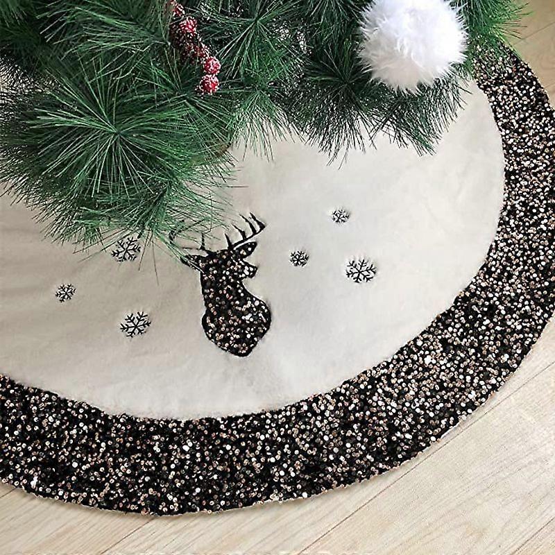 Luxora 48 Inch Champagne Sequin White Faux Fur with Elk Sequin Embroidery Christmas Tree Cushion Base for New Year Party Decoration-3