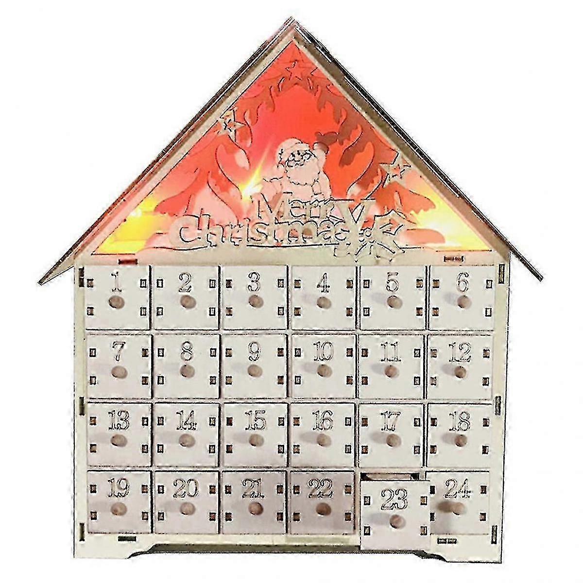 Christmas Wooden Countdown Calendars Count The Days Until Christmas Day Features: 1.This decorative wooden advent calendar is the perfect item to add festive holiday cheer to your home. 2.Made of high quality wood materials, this Christmas advent calendar is decorated with highly detailed Christmas favorites. 3.Count the days until Christmas day with the numbered drawers on this advent calendar. 4. It has 24 drawers that can be pulled open,you can put little candies, toys, or even special messages in drawers so that each day you count down you get something special. 5.Compact size will fit perfectly in a wide range of tables and shelves so you can decorate any place in your home. 6.Can also be used as a refined and beautiful gift. 7.Countdown Calendar only, other accessories demo in the picture is not included. Specifications: Power Supply: 2x CR2032 Cell Batteries(Not Included) Item Type: Countdown Calendar Material: Wooden Size: app.38x30x5cm/14.96x11.81x1.97in Color: As the picture show Quantity: 1 Pc Note: No retail package. Please allow 0-1cm error due to manual measurement. pls make sure you do not mind before you bid. Due to the difference between different monitors, the picture may not reflect the actual color of the item. Thank you Package Includes: 1 x Countdown Calendar 1 xLED Light (Not included batteries) 4xColored pen