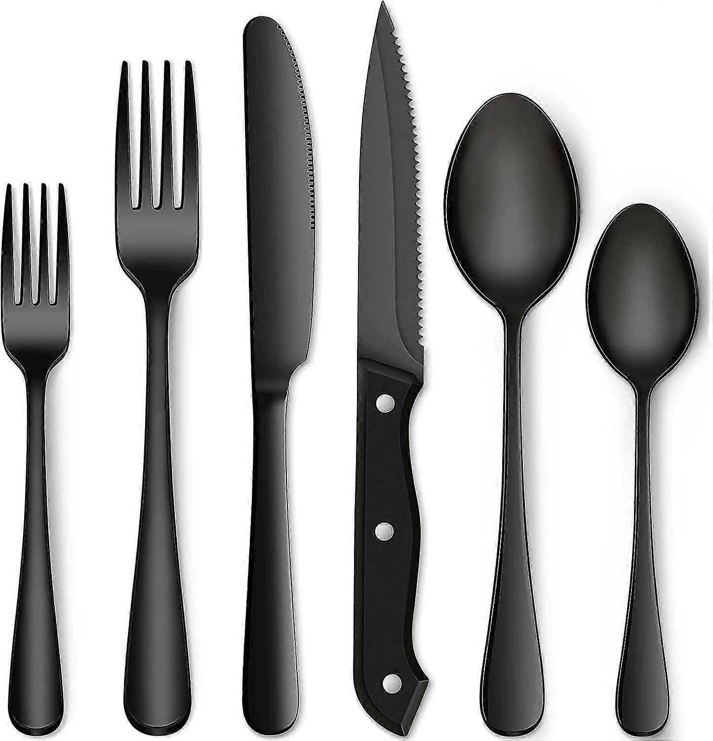 Matte Black Silverware Set with Steak Knives for 8 Persons