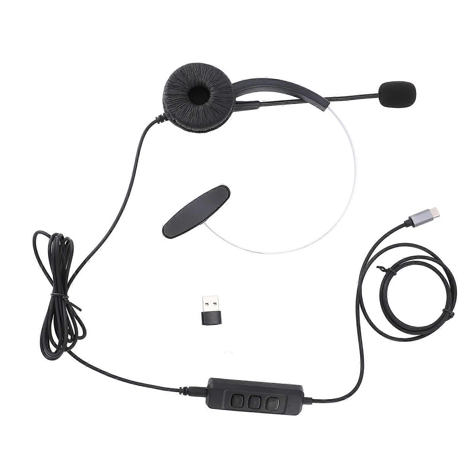 Monaural Phone Noise Canceling Microphone Volume Adjustable Office Telephone Headset with C to USB Adapter for Call Center Black