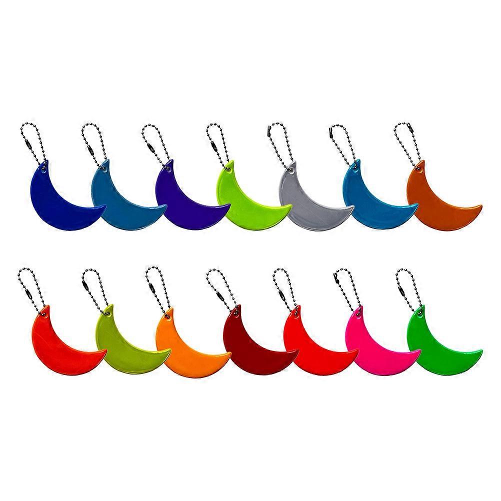 Moon Shaped Reflective Pendant with Chains for Outdoor Use 14 Pieces Assorted Color PVC