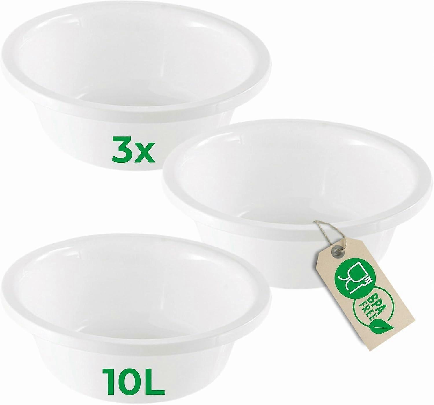 Novaliv 3x Spülschüssel Rund 10L, D40 cm, Weiß, BPA-frei Spülmaschinenfest Ideal für Küche und Campi