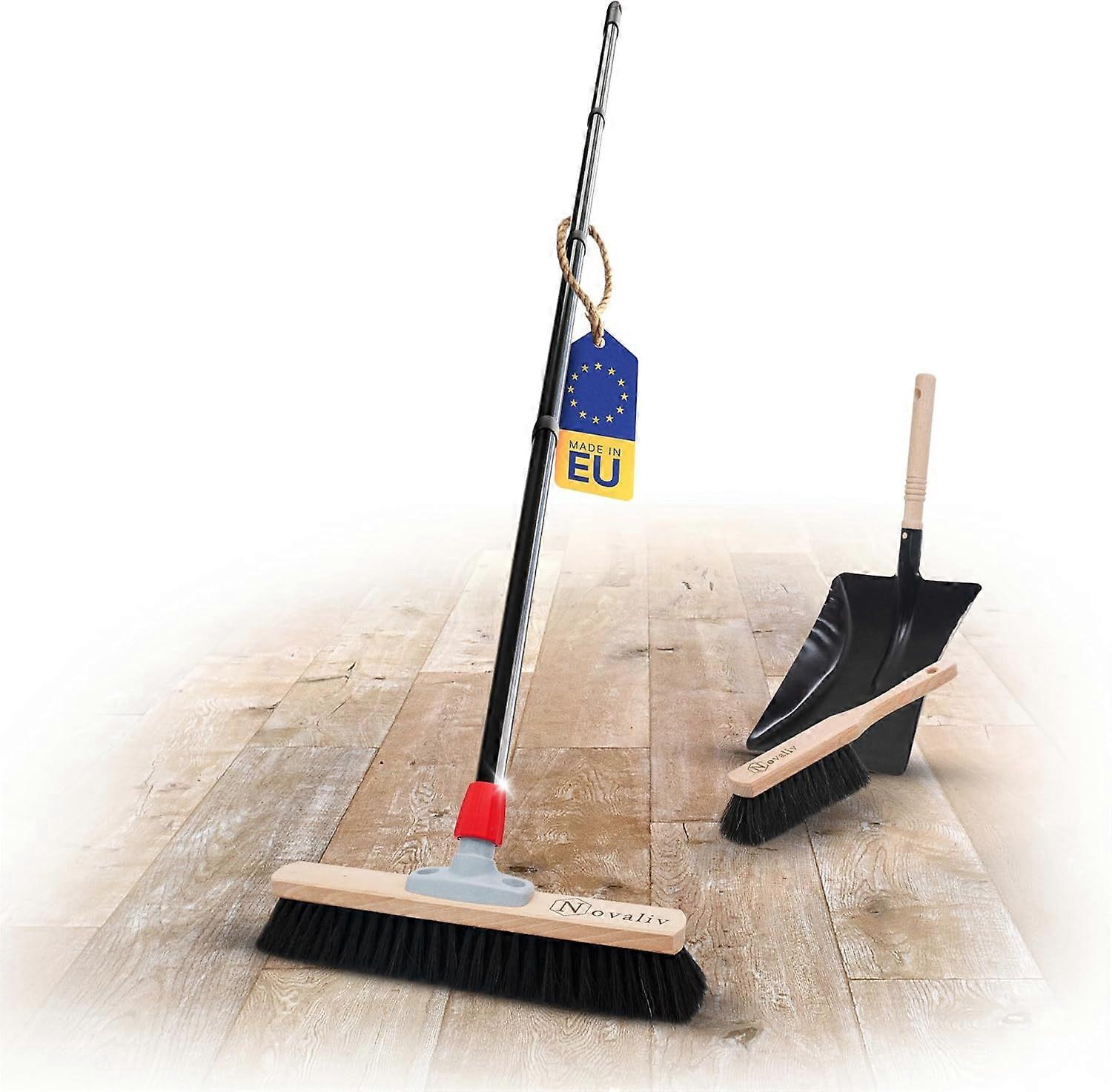 Novaliv Saalbesen Besen mit Stiel 40 cm Borsten Rosshaarbesen inkl. Kehrgarnitur schwarz bestehend a