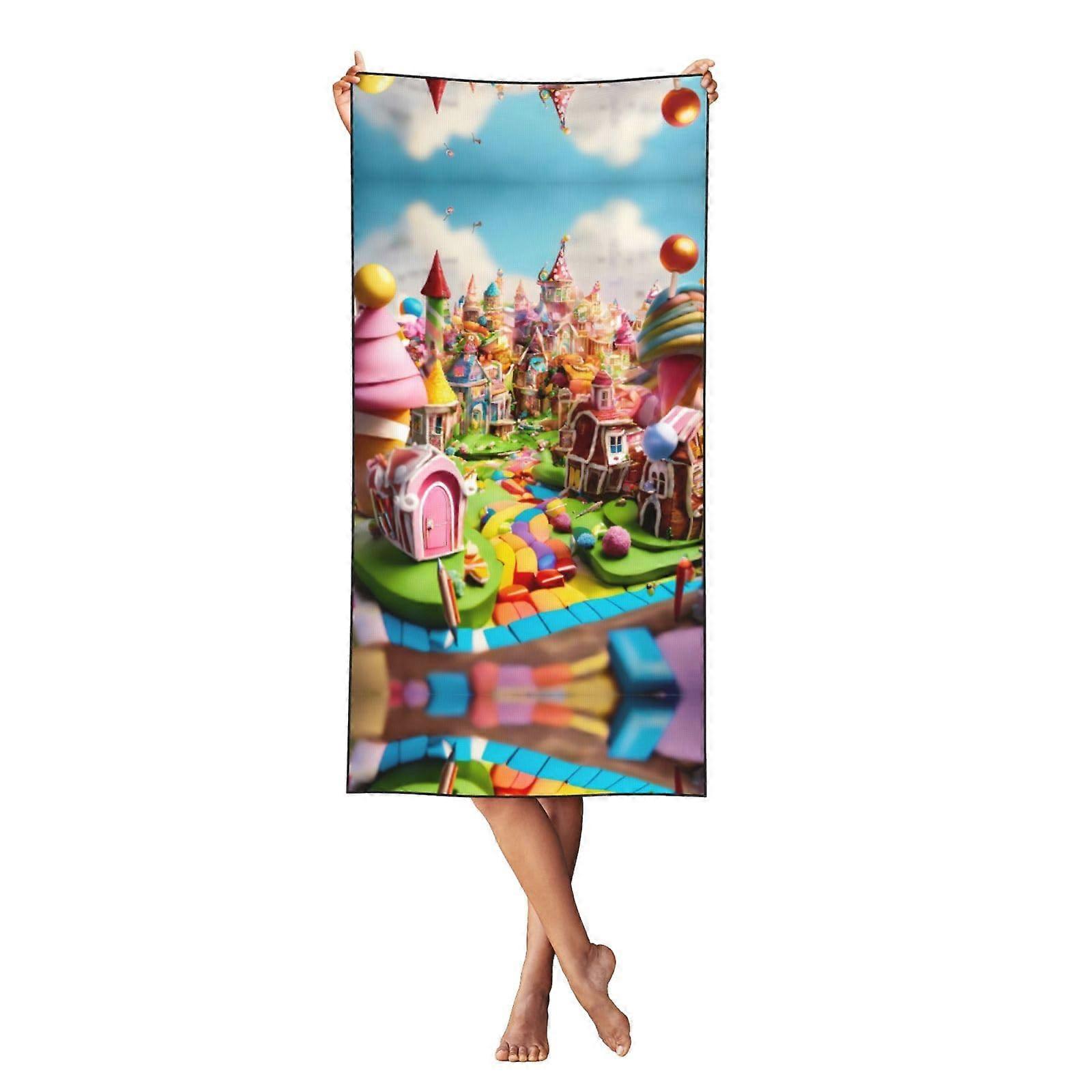 Oversized Quick Dry Beach Towel for Adults with Print, Soft Polyester, Black