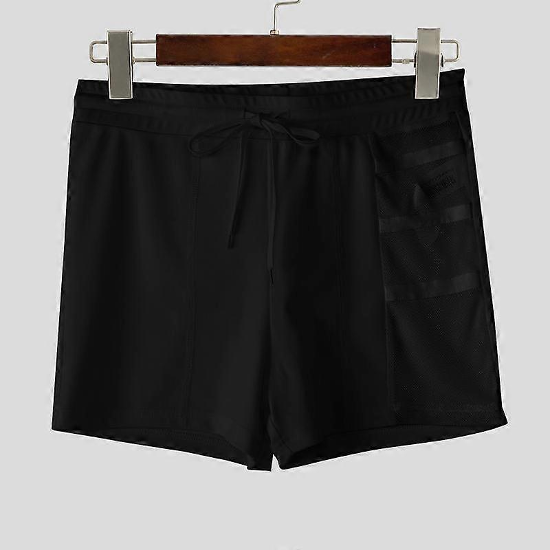 INCERUN Men Drawstring Elastic Waist Side Mesh Patchwork Shorts Pajamas