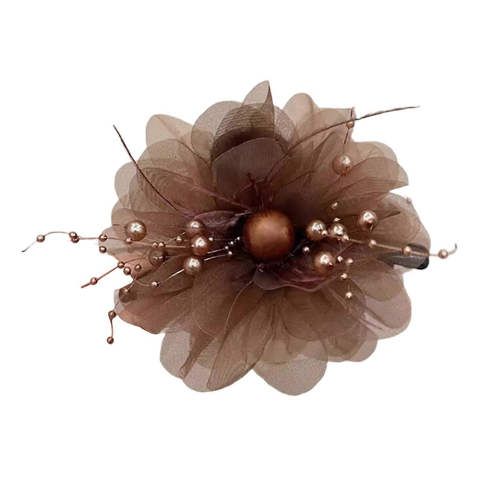 Comfortable Lightweight Hair Clip With Peony Design Feather Accent Secure Grip Styling Tool Coffee color