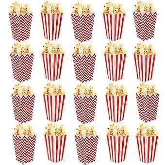 Popcorn škatule 100 ks Popcorn Favor boxy Červená biela pruhovaná vlna papier Popcorn Nádoby na kino Narodeninová oslava Filmové večery