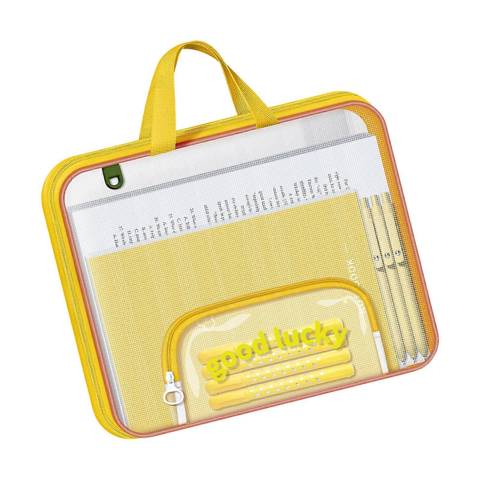 Portable Mesh File Case Compartments Handle Organizing Work Study Materials Efficient Classification Systems Yellow