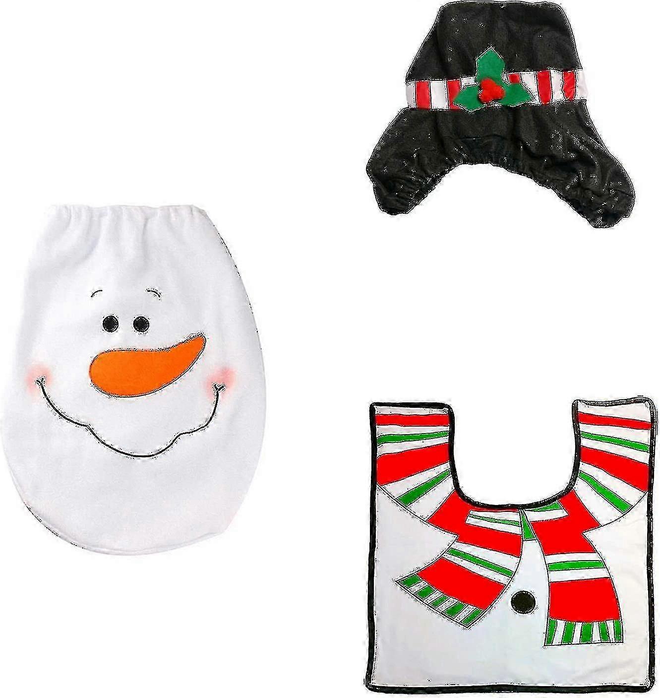 For 3d Santa's Toilet Seat Cover Set Bathroom Christmas Decorations (snowman)3pcs