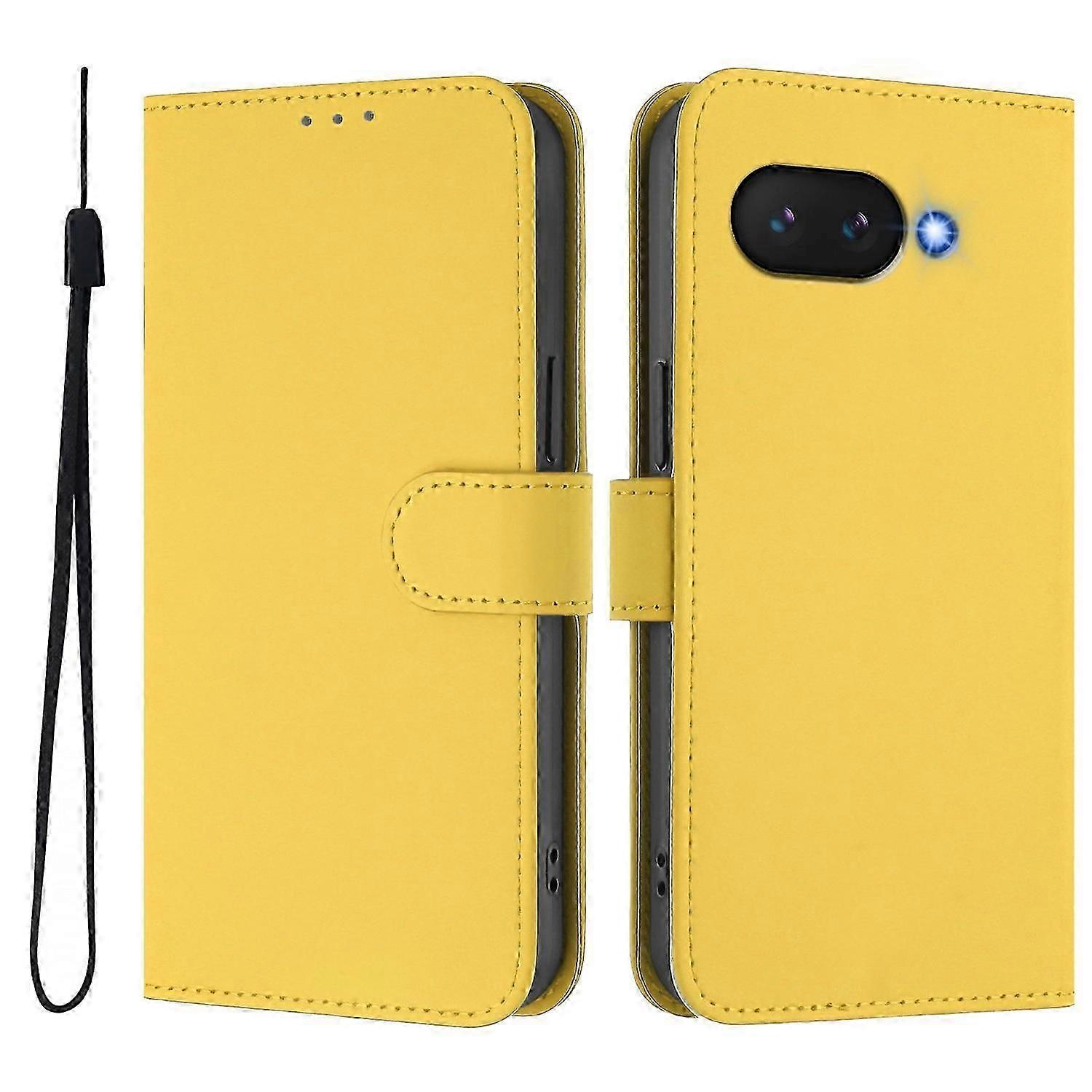 For Google Pixel 9a Case Solid Color Wallet Leather Phone Cover with Strap - Lemon KB