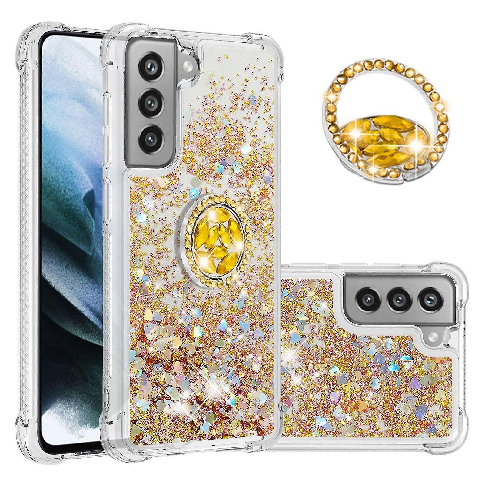 Case for Samsung Galaxy S21 FE 5G Bling Flowing Liquid Floating Sparkle Glitter Bumper with Rotation Ring Kickstand Compatible with Samsung Galaxy S21