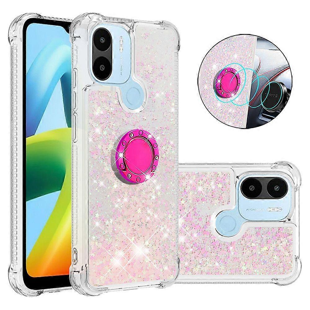 Case for Xiaomi Redmi A1/A1 Plus Bling Flowing Liquid Floating Sparkle Glitter Bumper with Rotation Ring Kickstand Compatible with Xiaomi Redmi A1/A1