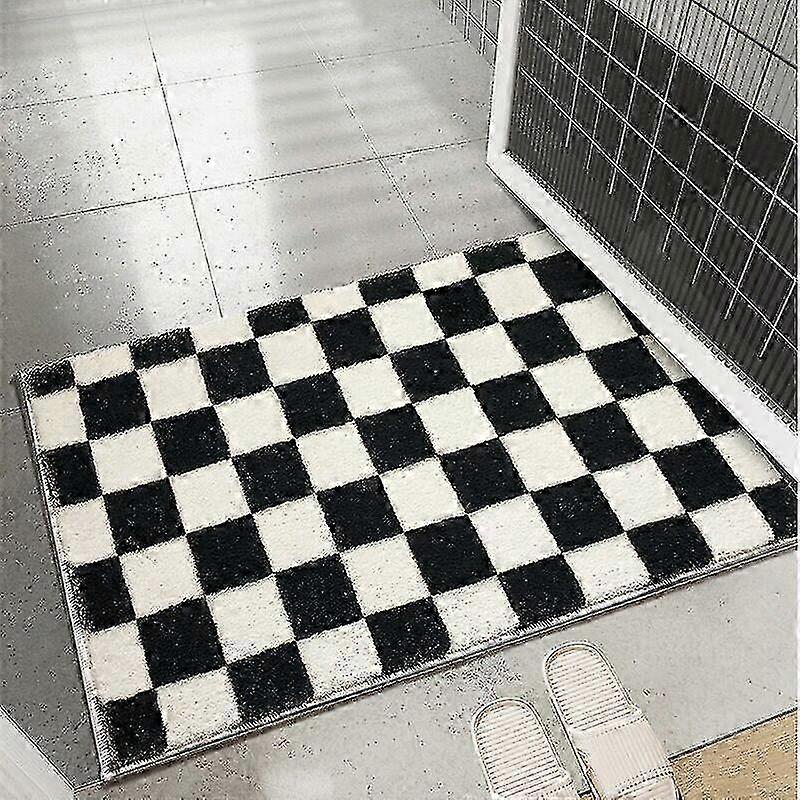 Checkerboard Bath Mat Thick Non-Slip Absorbent Bathroom Rug, Entrance Doormat for Bedroom Home Decor