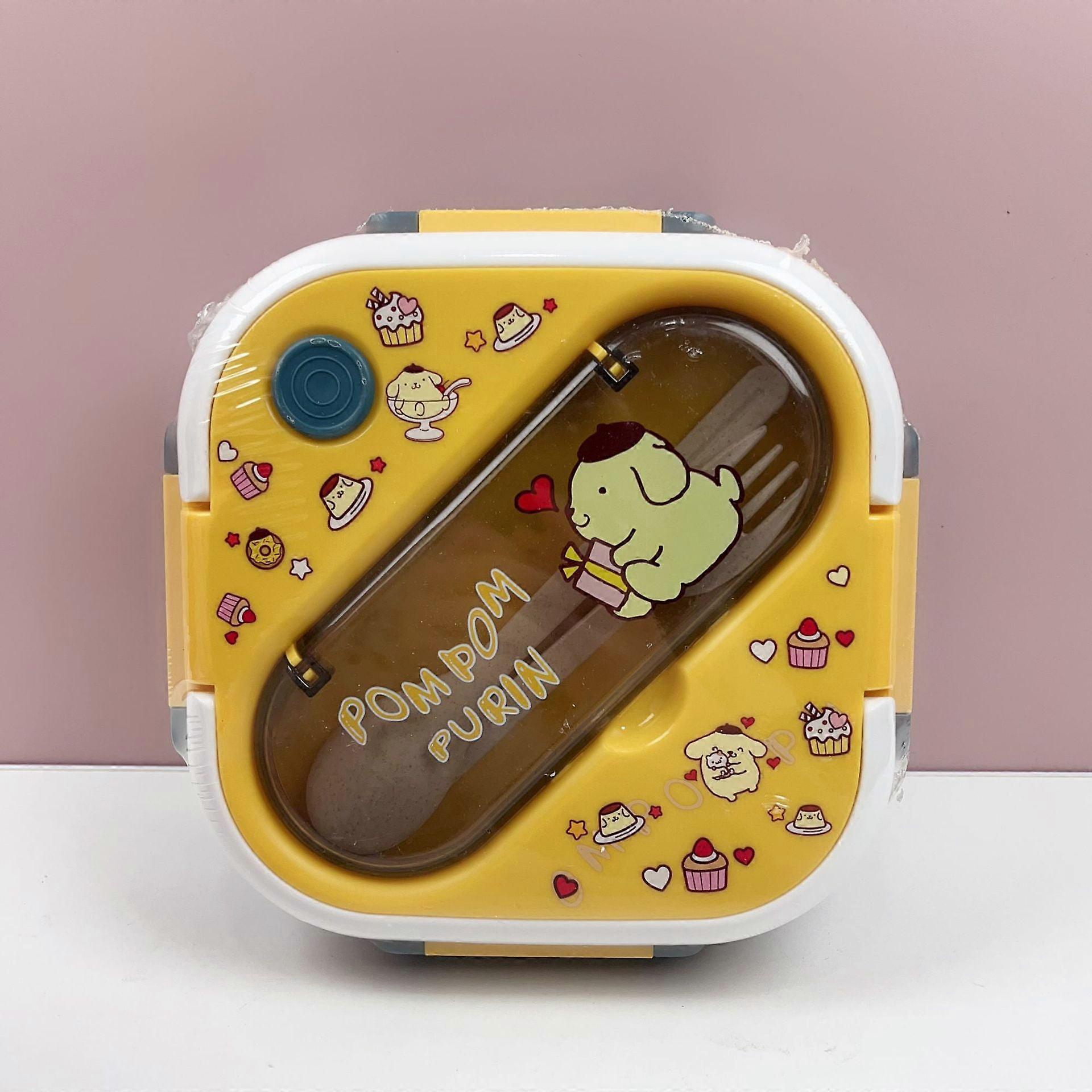 Sanrio Hello Kitty Kuromi Cinnamoroll Three-compartment Lunch Box with Spoon and Fork Cartoon Anime Character Print Storage Box