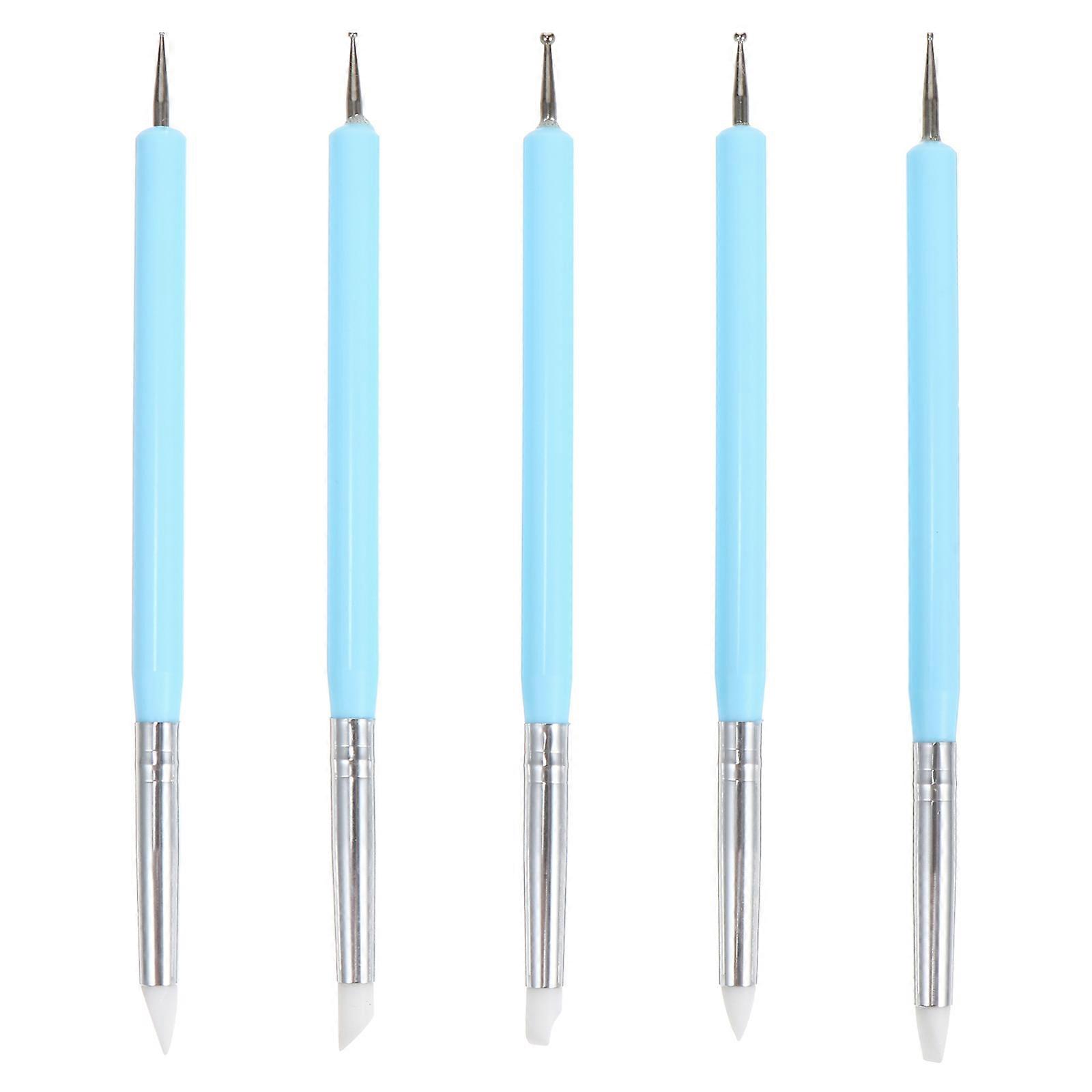 Manicure Brush Silicone Dotting Tool for Nail Art 5Pcs Blue Set