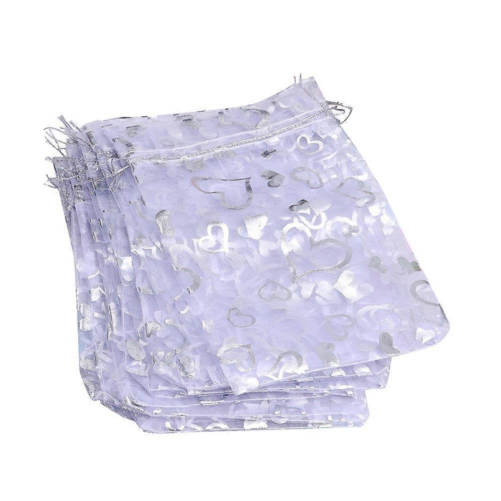 Heart Mesh Pouches For Jewelry Packing In Silver Color 7x9cm For Wedding Party 100Pcs