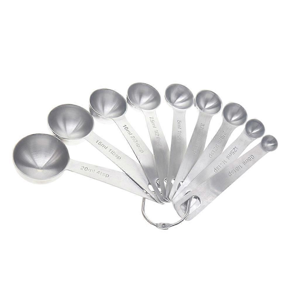 Stainless Steel Measuring Spoons 9 Piece Set Silver Stackable Nested for Easy Storage with Clear