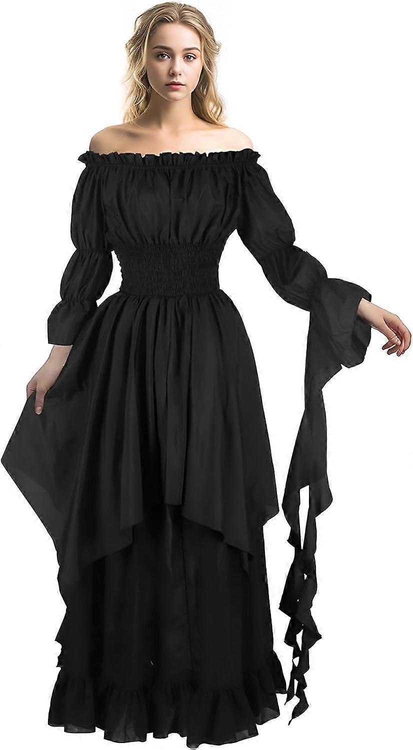 Medieval Strapless Dress-Victorian Elastic Waist Witch Dress Renaissance High-Low Maxi Dresses