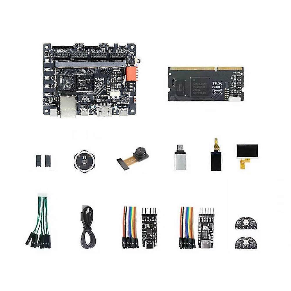Tang Primer 20K core board uses GW2A-LV18PG256C8I7 as the main chip, which has rich internal resources such as high-performance , high-speed LVDS interface and BSRAM memory. High cost-effective advanced FPGA development board. The core board has onboard DDR3 memory particles and power IC and other peripheral components, allowing users to use the core board alone to quickly develop and verify projects for high-speed and low-cost applications. Tang Primer 20K Dock baseboard is equipped with rich peripheral resources, such as onboard USB-JTAG & UART circuits, Ethernet PHY and RJ-45 connectors, USB2.0 PHY, output interface, stereo output circuit and 3.5mm headphone connector, RGB screen connector, camera connector. Multiple ways to play: drive RGB screen, drive SPI screen, screen display camera content, drive display, drive FC game, microphone array test, sound field thermal map, frame difference detection, drive PMOD. Model:Tang Primer 20K DOCK Master model:GW2A-LV18 Logic unit (LUT4):20736 Block RAM:828Kbit+41Kbit Loop detector (18x18):48 PLLS:4 DDR3:soft core driver USB:soft core driver Ethernet:support :support PMOD interface:yes Download :onboard downloader Due to different batches, the printed words on the product will be different, which does not affect use. Colour:Black Material:PCB Package Contents: 1 * Tang Primer Development Board Kit Only the above package content, other products are not included. Note: Light reflection and different displays may cause the color of the item in the picture a little different from the real thing. The measurement allowed error is +/- 1-3cm.