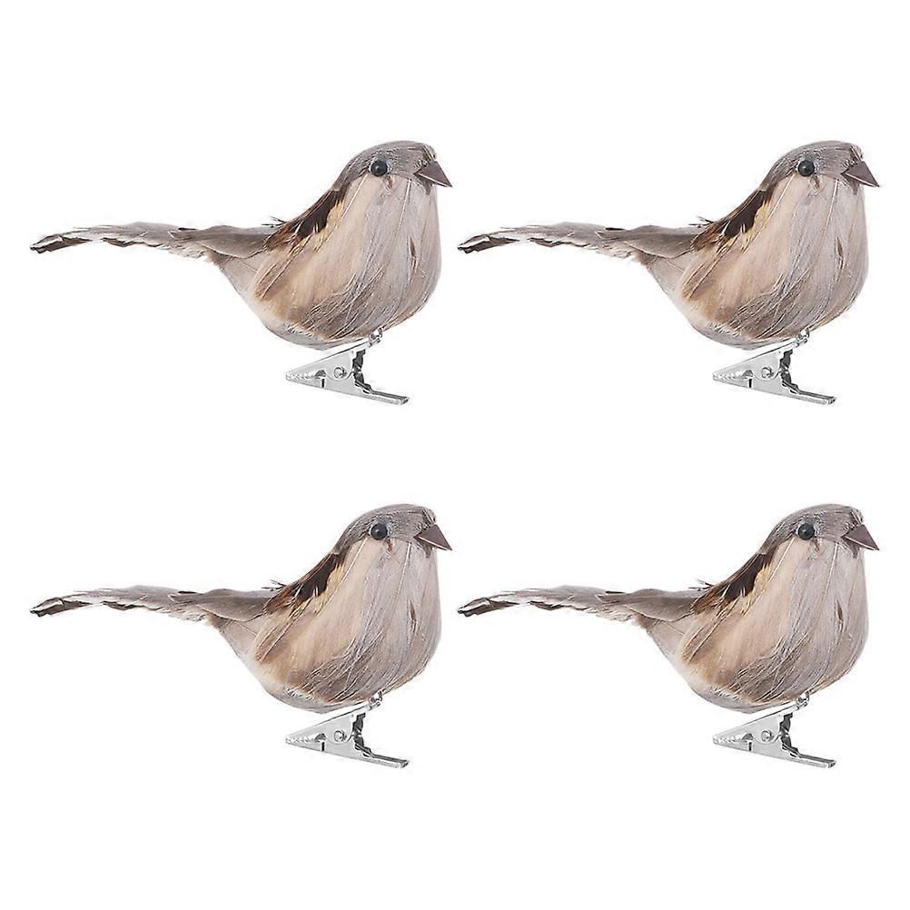 Artificial Simulated Sparrow Birds Garden Decoration Ornaments 4Pcs Grey