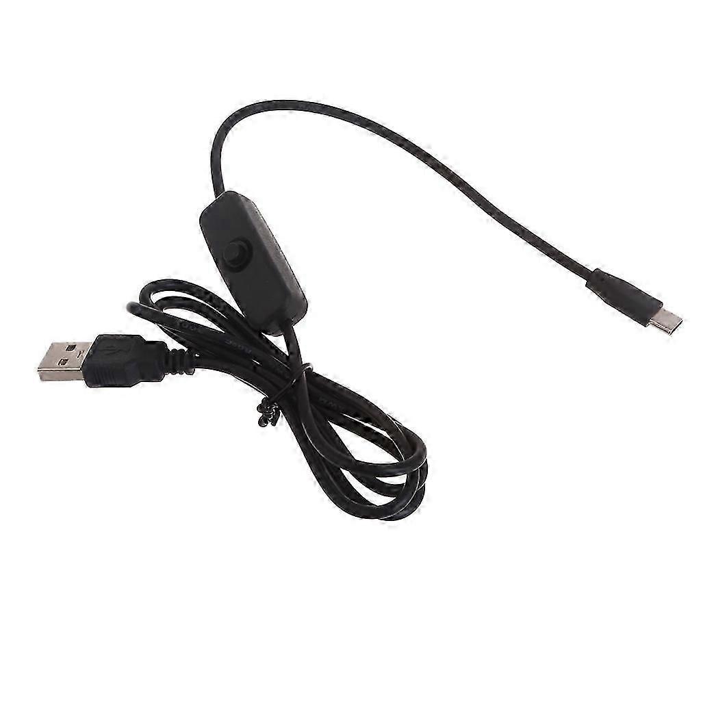 USB Cable with Switch 5V3A Type-C to USB A Charging Cable for Raspberry Pi 4B Black