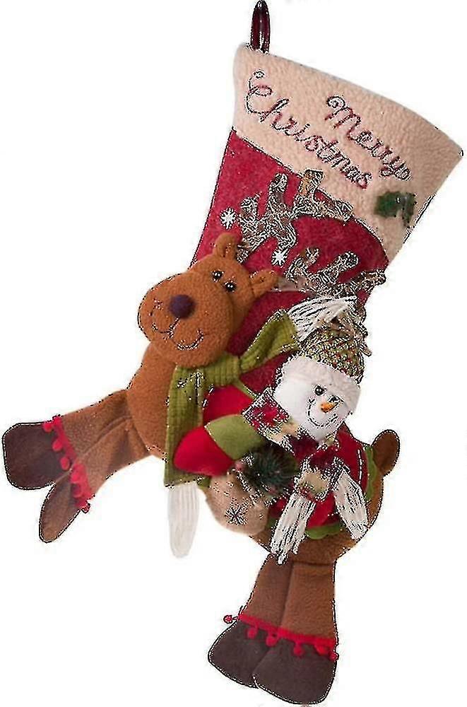 Large Christmas Stockings, Snowman, Reindeer Christmas 3d Character Plush Toys Kid's Christmas Decorations