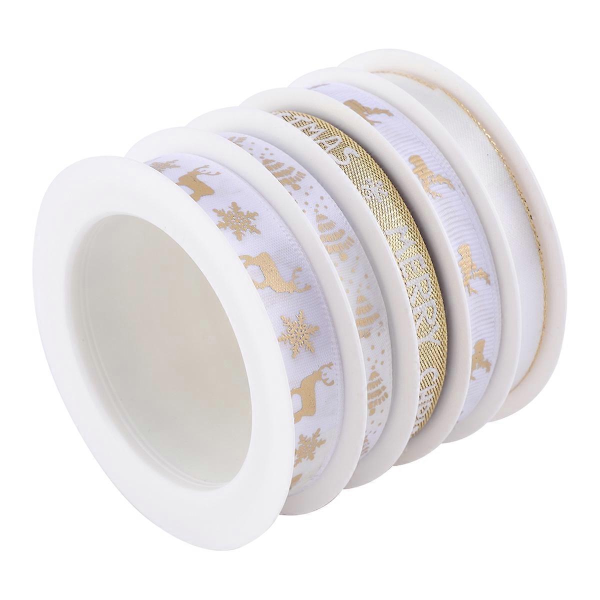 Christmas Ribbon Gift Decoration Band for Package 5 Rolls White Ribbon