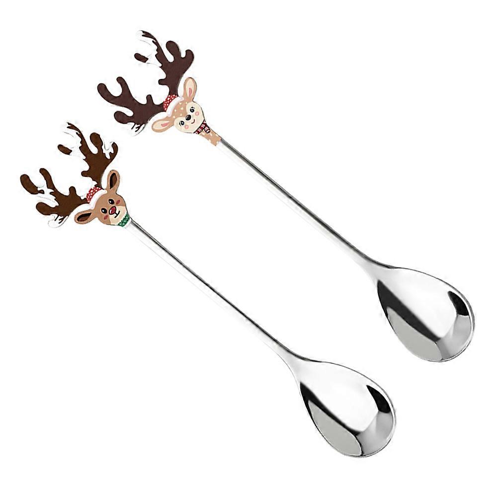 Christmas Reindeer Dessert Ice Cream Spoons 304 Stainless Steel Holiday Gatherings Assorted Color Stirring 8 Pcs