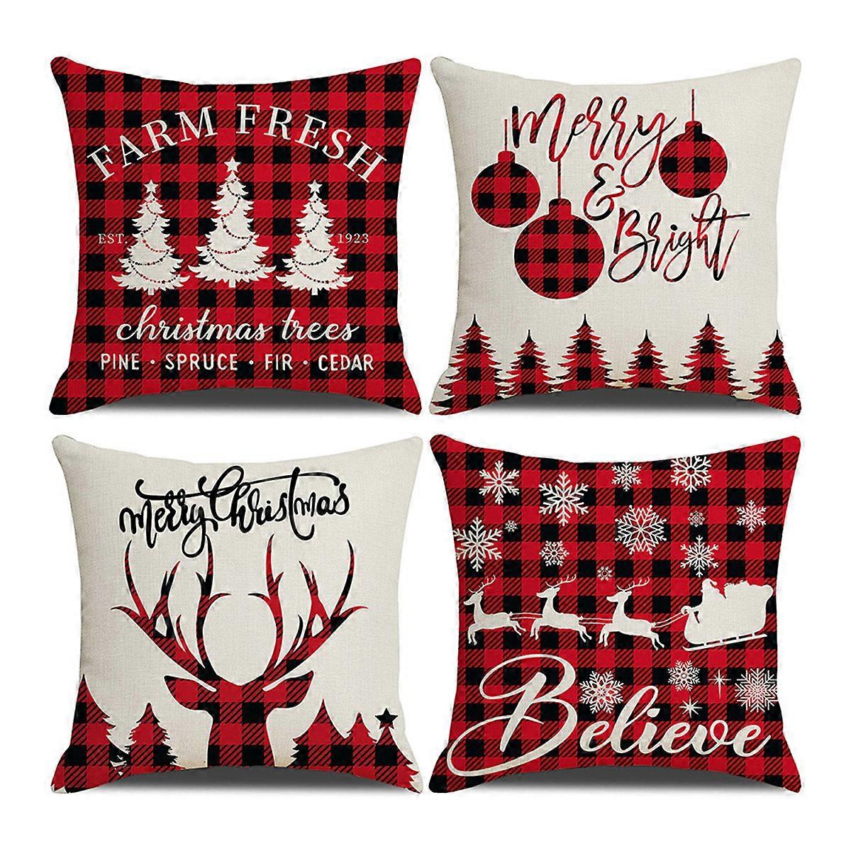 Christmas Pillow Covers 18x18 Inch Set of 4 Snowflake Merry Christmas Holiday Pillowcases