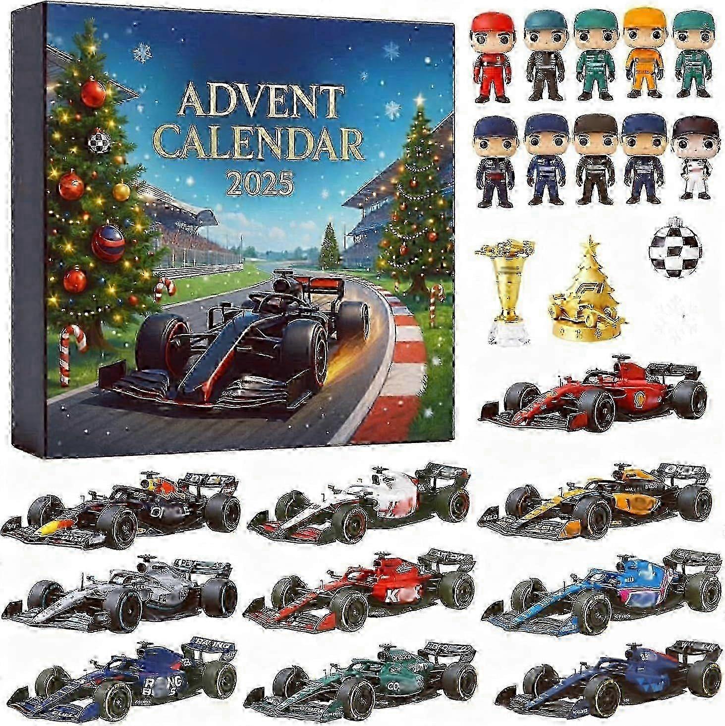 Racing 2025 Christmas Advent Calendar - 24 Days Christmas Countdown Calendar, 2D Racing Team Ornaments & Collectibles, Holiday Surprise Gifts fo