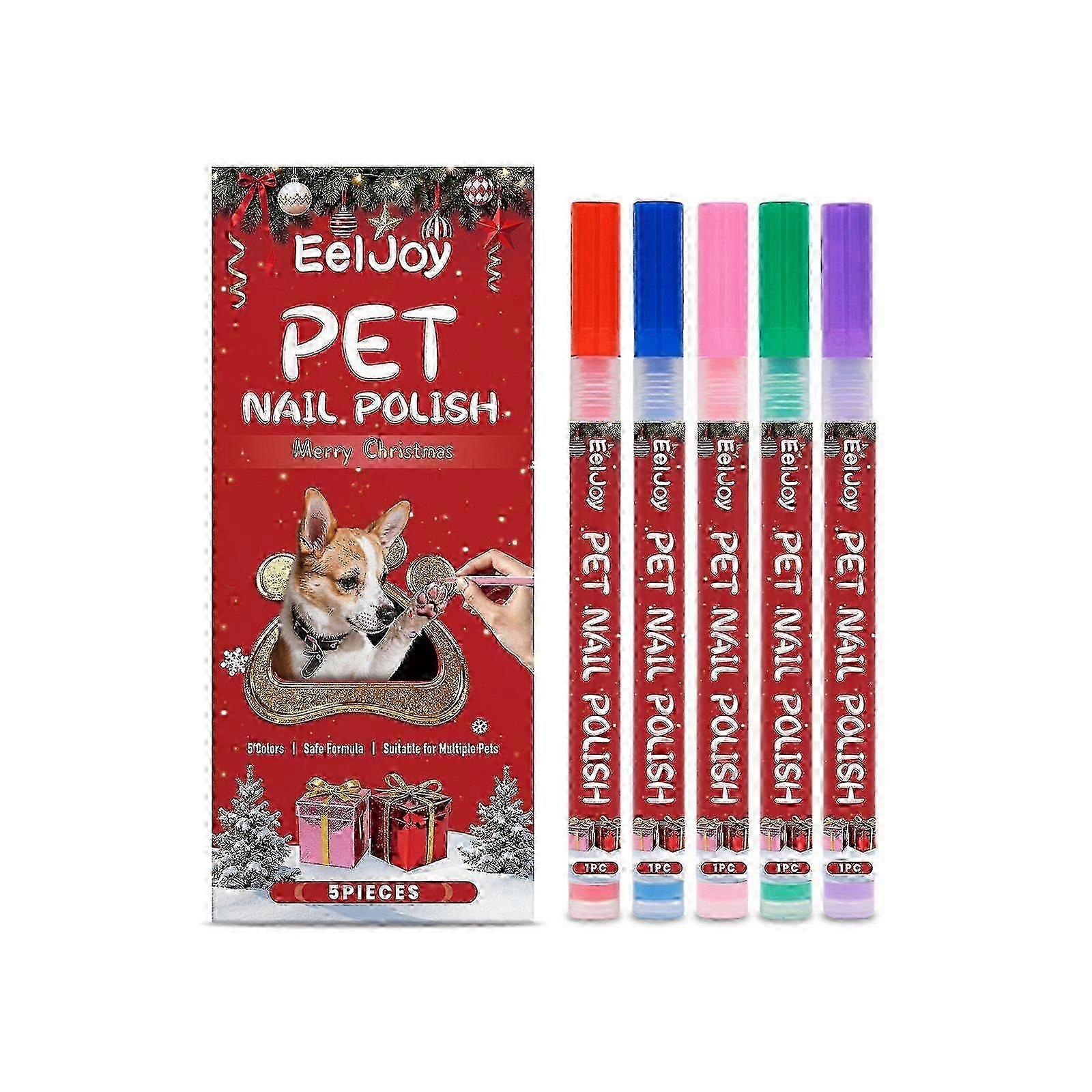 Christmas Dog Nail Polish, 5 Colors Dog Nail Polish Pens Quick Dry, Pet Nail Polish Set for Dogs, DDIY Dogs Puppy Nails, Dog Safe Nail Polish Non Toxi