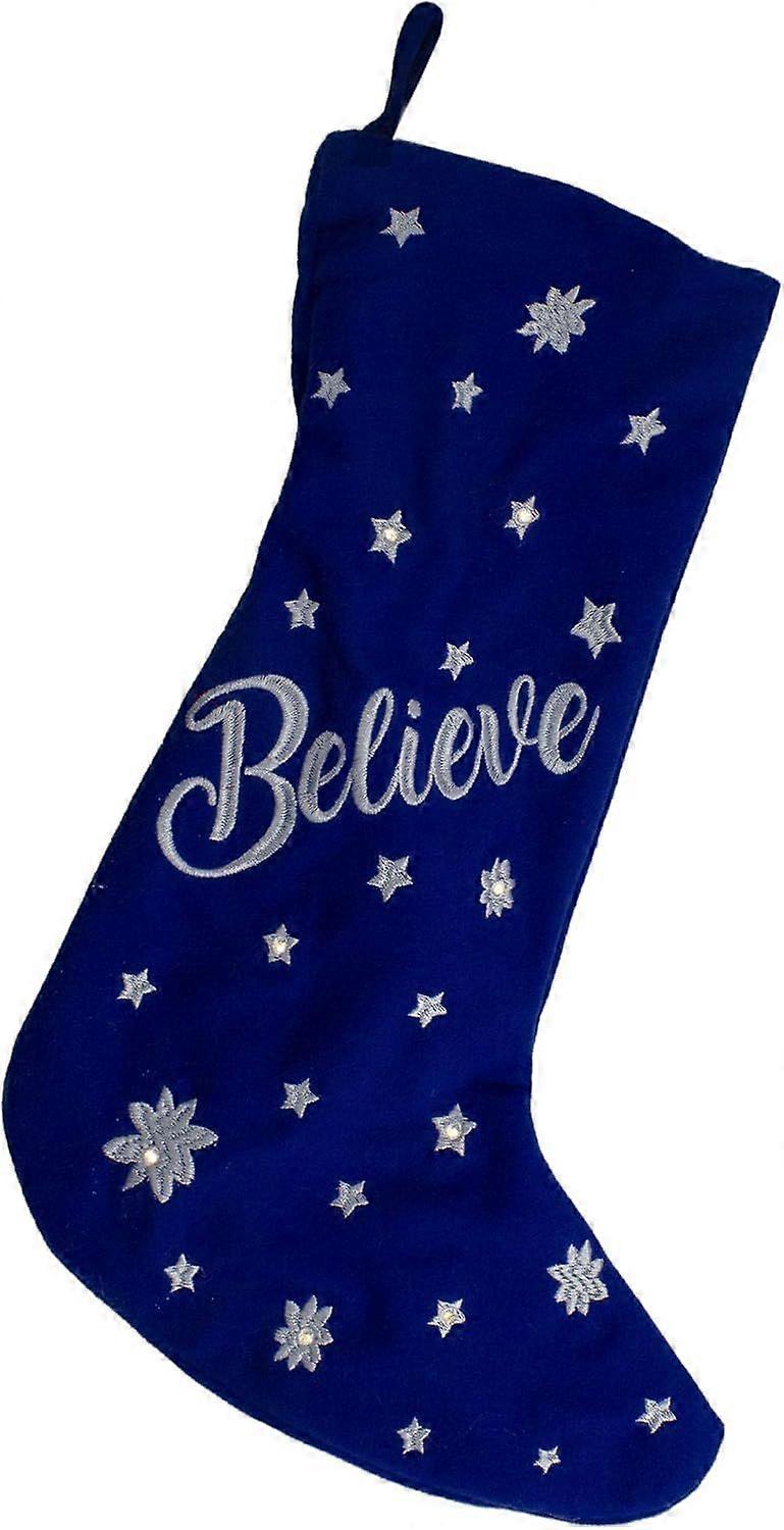 High quality brand new 18" LED Blue Stocking Believe with White Snowflakes