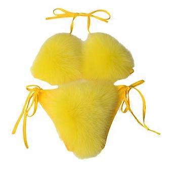 Women's Faux Fur Halter String Triangle Bikini Sets Two Piece Swimsuits