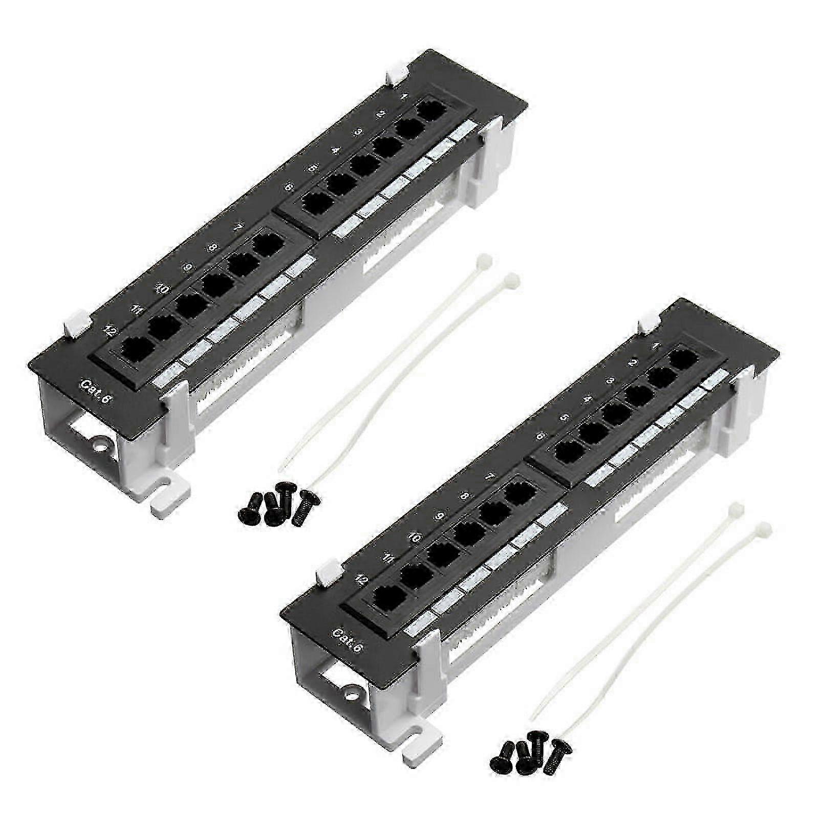 x 2X Network Tool Kit 12 Port CAT6 Patch Panel RJ45 Networking Wall Mount Rack with Wall Mount Bracket