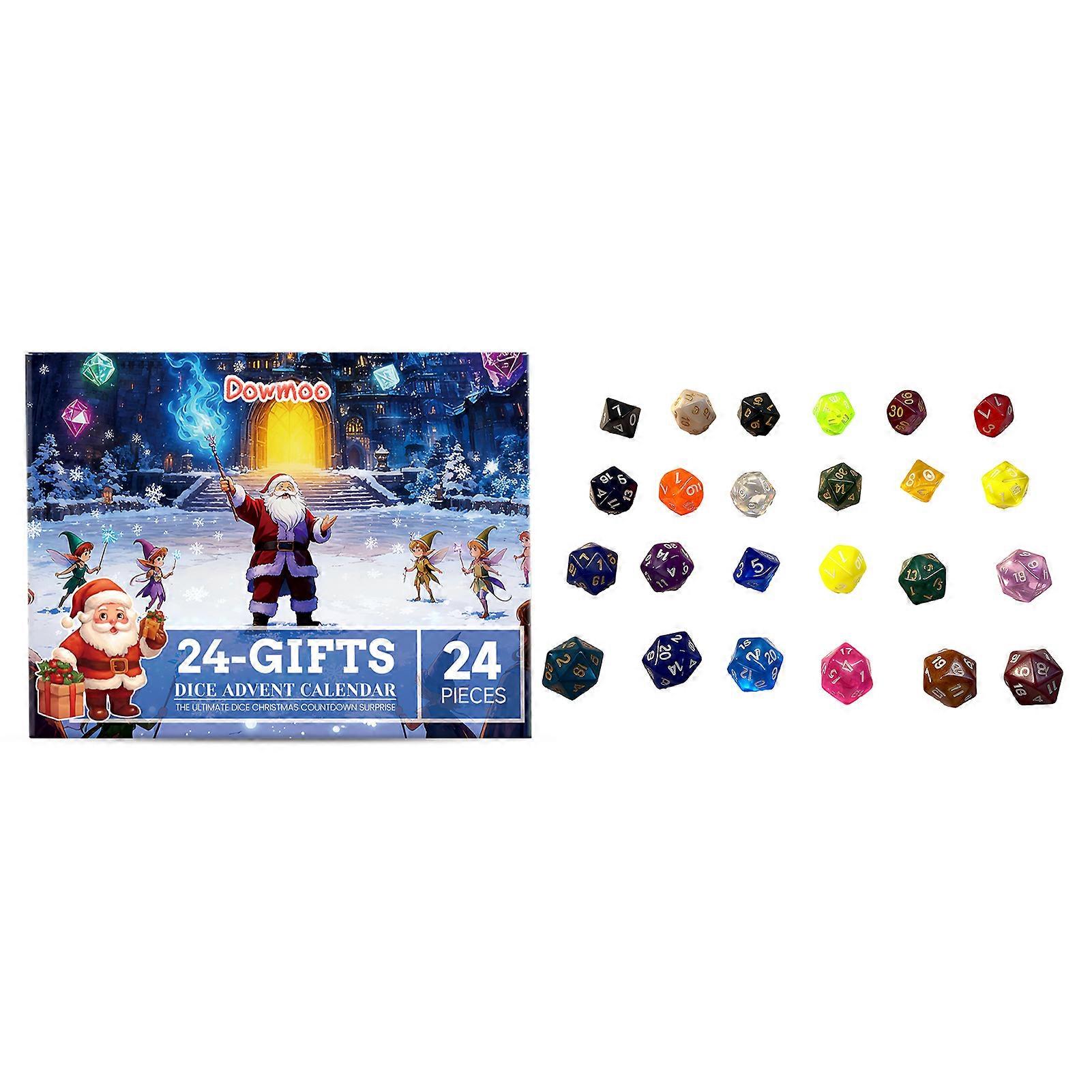 Features: Festive Countdown Experience: Enjoy the joys of counting down to xmas with daily surprises. Unique Dices Collection: Discover a variety of special dices, perfect for gamers and collectors. Daily Unboxing Excitement: Open a new compartment every day for a fresh-dose of anticipation. Collectible Dices Sets: Expect various types, colors, and designs of dices to expanding any collection. Perfect Holiday Present Idea: An ideal present for friends, family, or fellow-enthusiasts during the festive season. Notice: Please allow 1-3cm deviation due to manual measurement Actual color may be slightly different from the image due to different monitors and light effect Description: Specification: 24pcs Package List: 1xXmas Advents Calendar Dices Box
